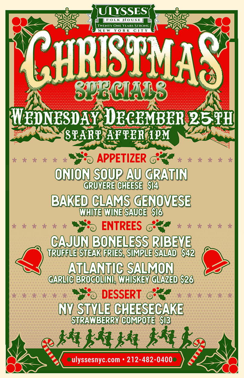 Skip cooking for the holidays and join us for our Annual Christmas Day holiday specials!